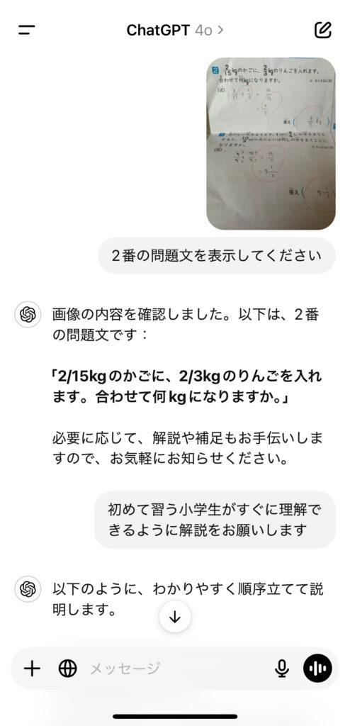 私は子どものわからなかった部分を写真にとり、ChatGPTに添付します。