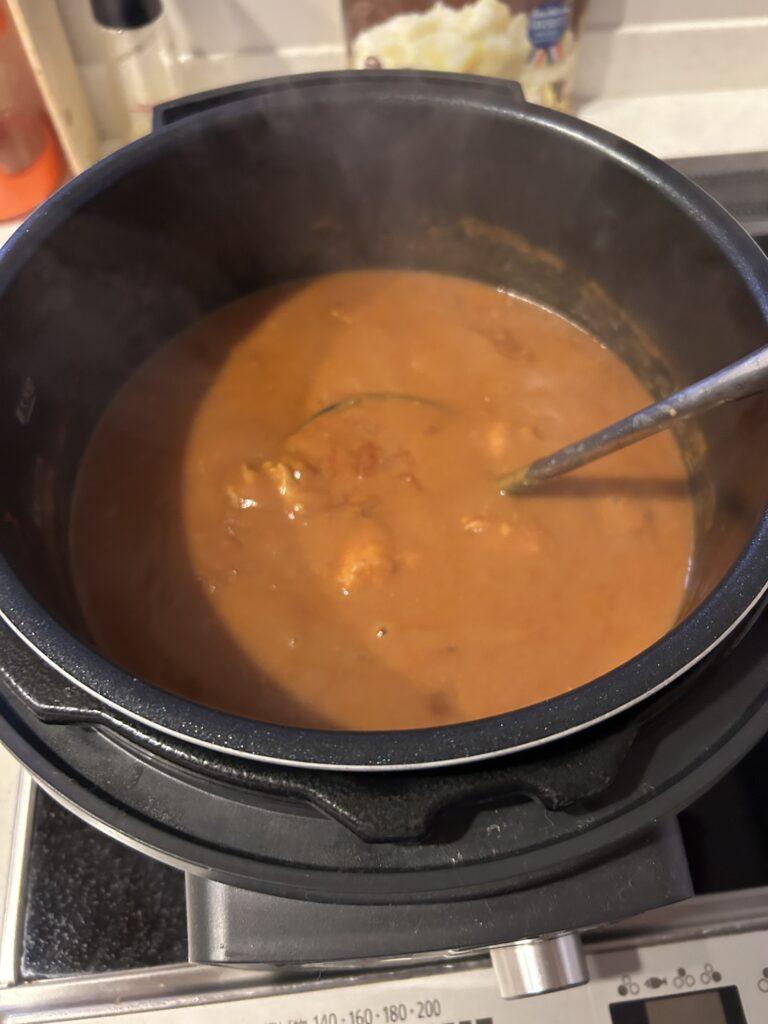 電気圧力鍋でバターチキンカレー 調理終了したら?
