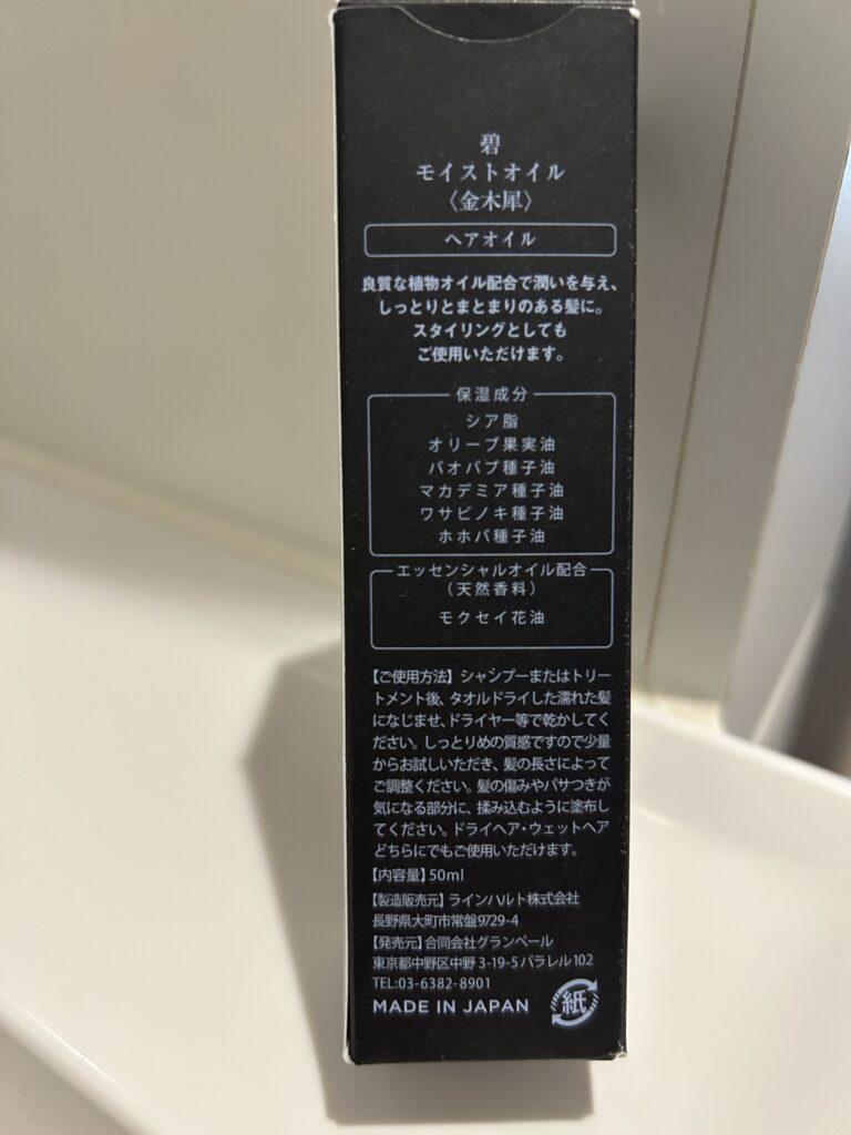 軽いオイルだと内部までに届かないのですが、重いオイルだと内部まで浸透し、まとまり感が持続するから、碧モイストオイルはMAX重いオイルだそうです。