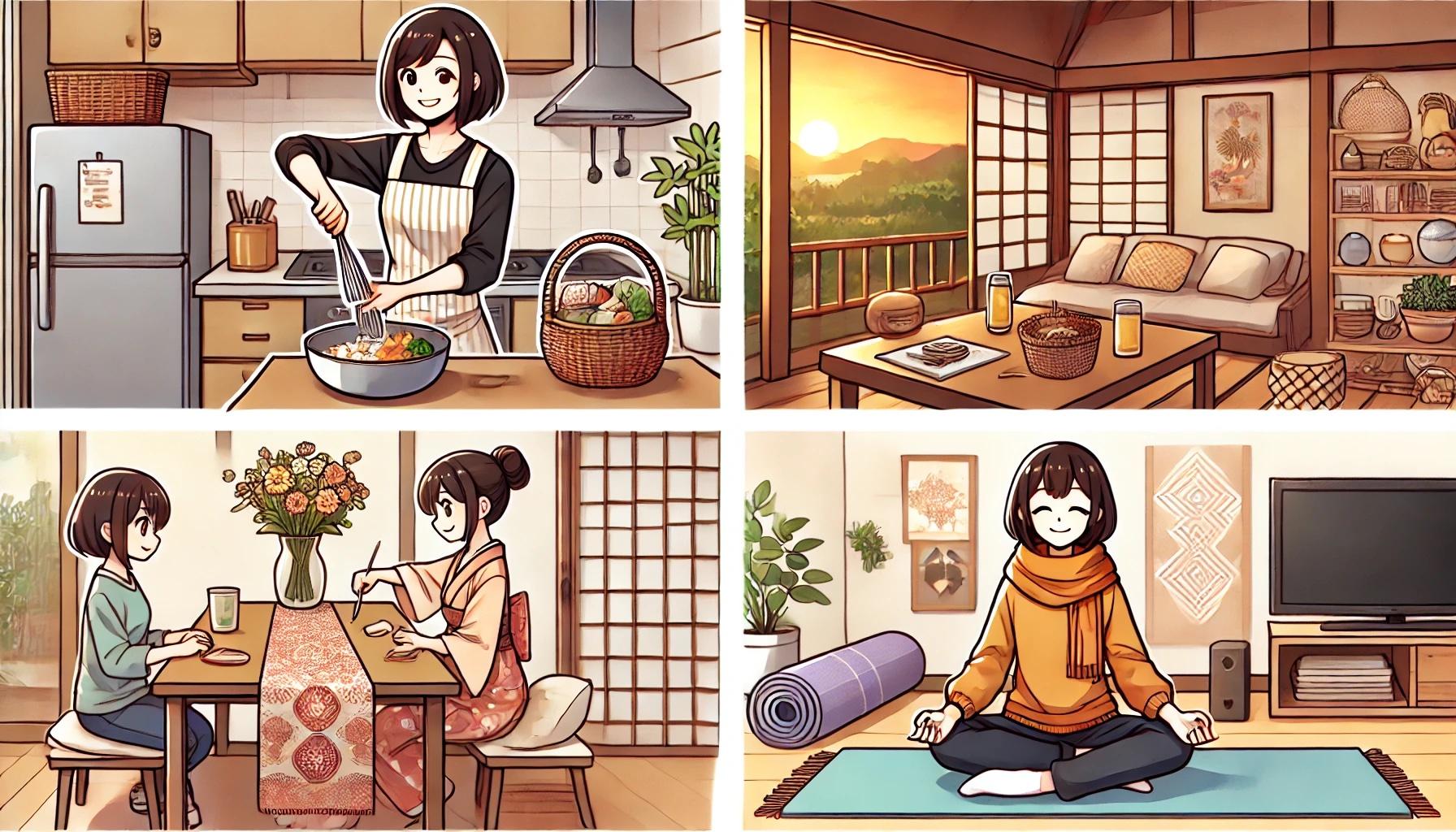 読書や映画鑑賞で心を豊かにしたり、料理やDIYで創作意欲を満たしたり、ヨガや筋トレで体をリフレッシュするなど、自分のペースで楽しめるのが魅力です。
